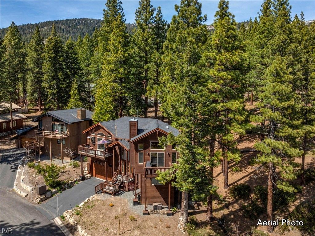 Beautifully remodeled early-2000s Lake Tahoe home in prestigious Incline Village, offering refined mountain luxury and timeless design. The chef's kitchen features waterfall-edge slab quartzite center island, KitchenAid appliances and 6-burner cooktop, heavy pine cabinetry, and slate tile flooring extending through the kitchen and entry for a warm, natural aesthetic. Rich DuChateau hardwood floors flow throughout the home, complemented by Hubbardton Forge LED lighting and custom chandeliers that add distinctive designer character. The inviting living room is anchored by a dramatic wall fireplace, creating a striking focal point and cozy mountain ambiance ideal for entertaining or relaxing evenings. Thoughtful craftsmanship and high-end finishes are showcased throughout, blending comfort, elegance, and modern alpine style. Ideally located in Incline Village, this residence captures the essence of Lake Tahoe living?luxury, warmth, and architectural artistry in a premier setting.